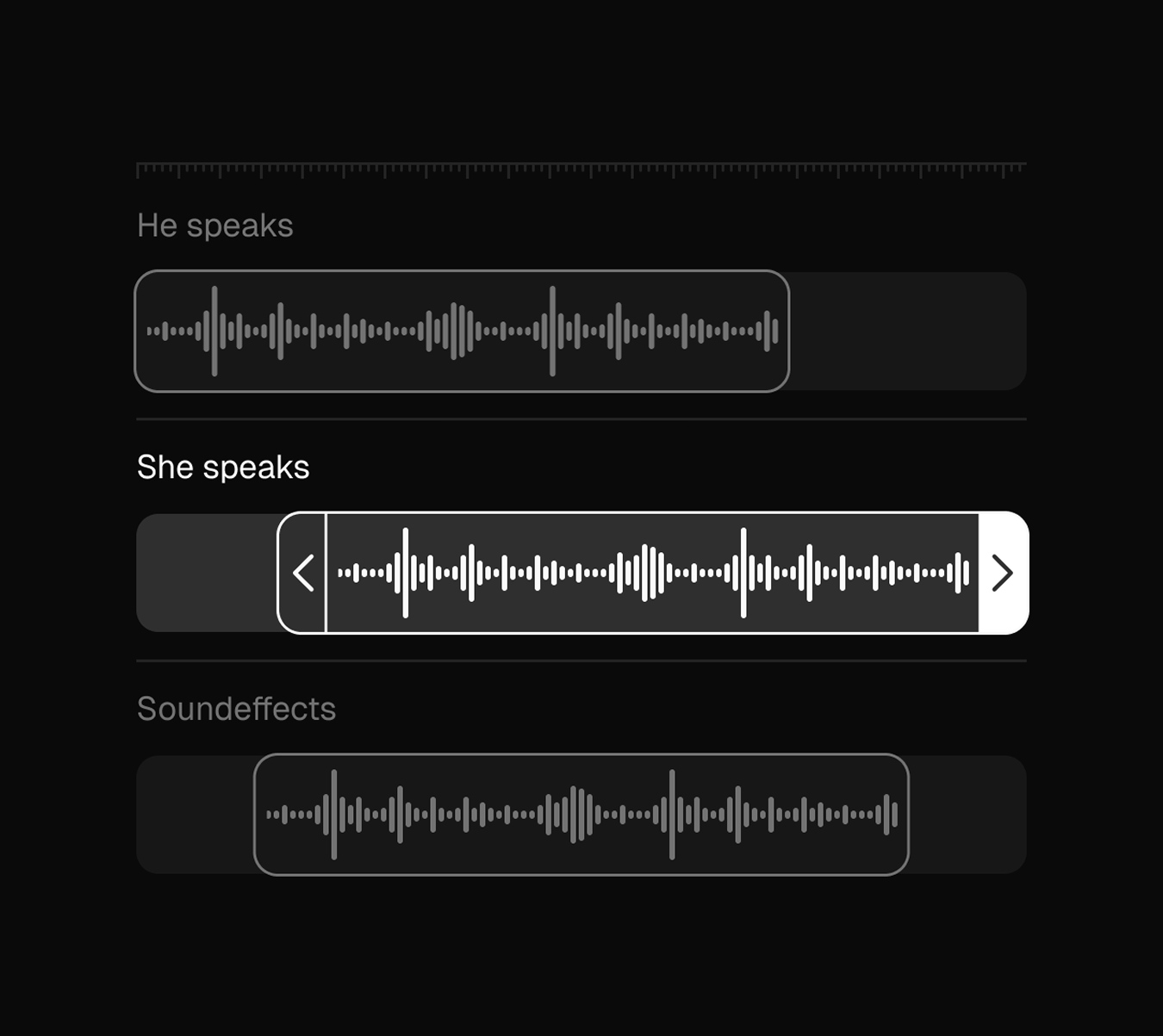 To make sound editing accessible for users without audio engineering knowledge, interactions should happen directly within the waveform. Editing the sound where it is visually represented makes the interface more intuitive and easier to understand.